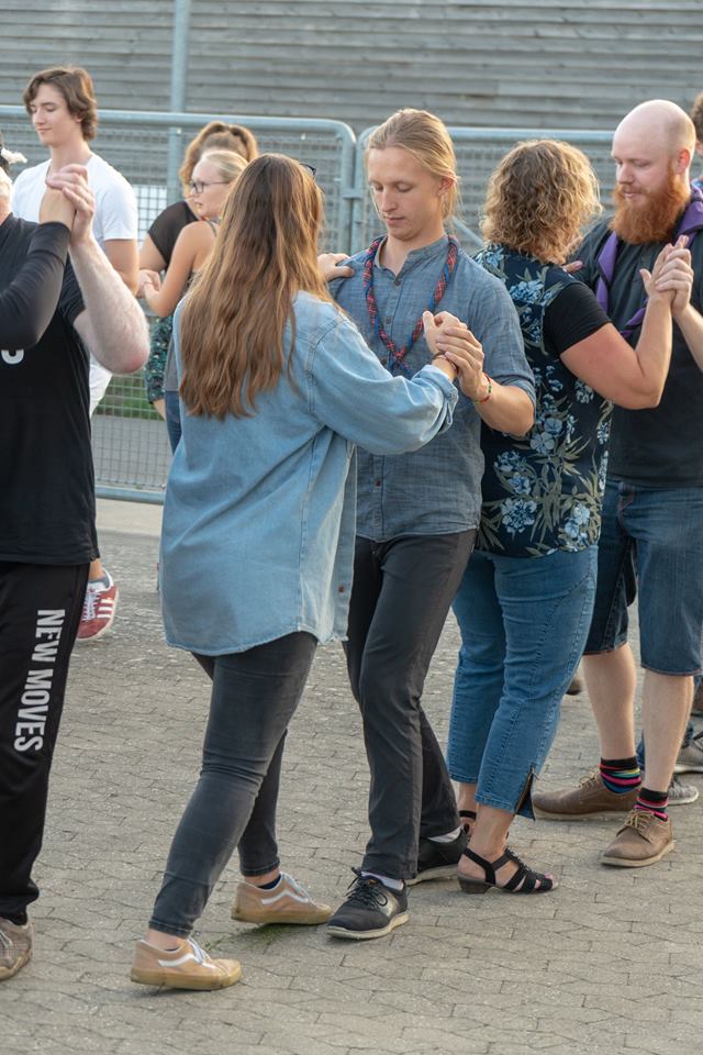 Begge hobbies er internationale og meget sociale. Der deltog en flok franske spejdere i dansen, og de kan jo også danse salsa hjemme i Frankrig for der er det jo de samme trin. I modsætning til folkedans som er landeopdelt.